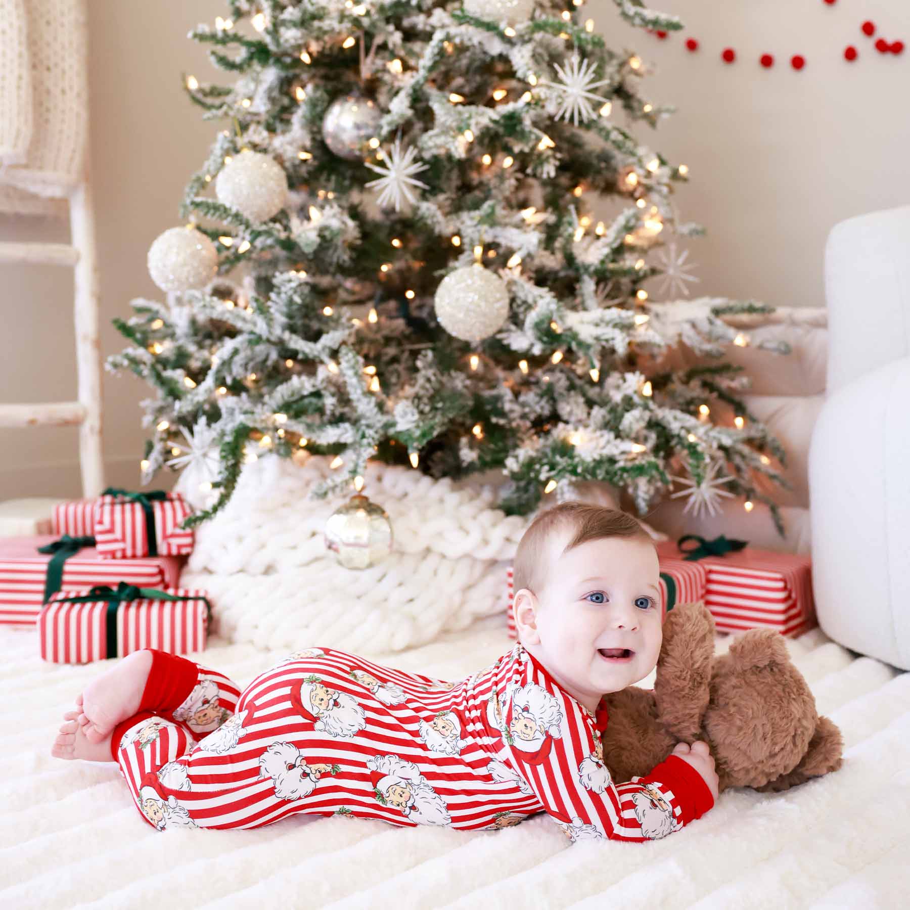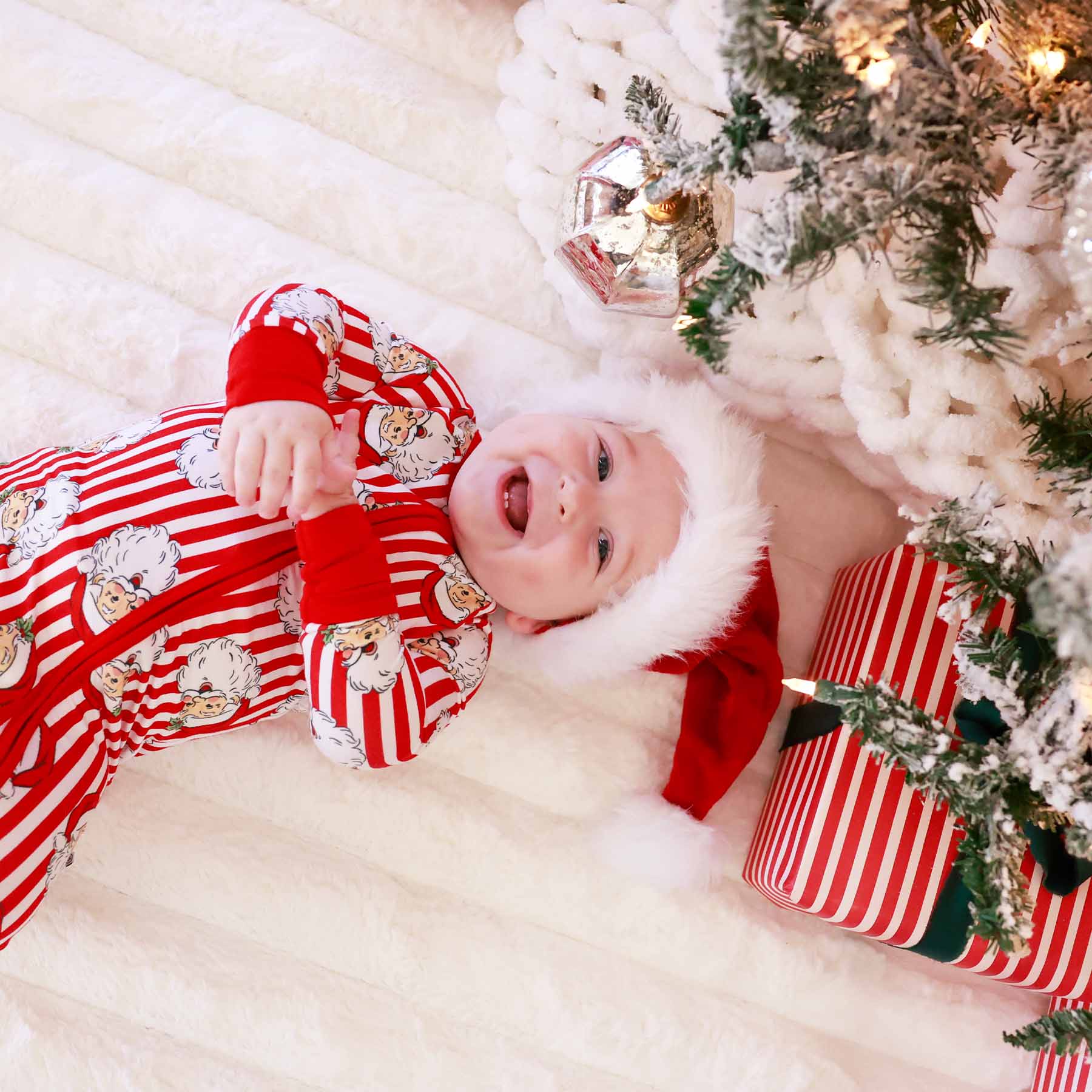 Convertible Zip Romper Details: * 95% Bamboo Viscose | 5% Spandex * Convertible Double Zipper Romper with flip mitts & footies (up to size 6-12 months) * Double Zipper for easy dressing & diaper changes * True-to-size, with extra room in the length to grow with baby * Includes: 1 Convertible Zip Romper (Accessories sold separately) Care Instructions: * Machine Wash Cold - Gentle Cycle * Phosphate Free Detergent Recommended for Color Care * Wash with like fabrics (bamboo only) * Layette should be washed inside out * Line Dry / Air Fluff * Do NOT use Fabric Softener Step into holiday magic with our Santa Claus Lane Convertible Zip Romper, where cozy comfort meets Christmas cheer! All sales are subject to MAAP agreement found here: https://cadenlane.com/pages/wholesale-maap-online-agreement