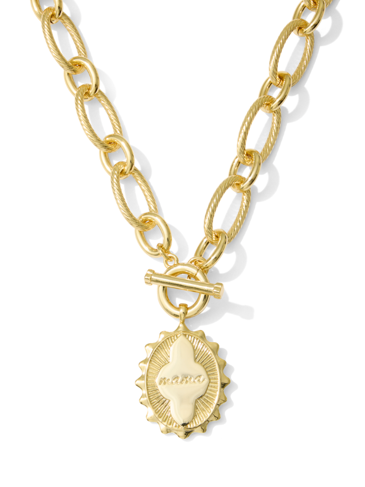 Show appreciation for the moms in your life with the Mama Gold Link and Chain Necklace. This thoughtful style features a vintage-inspired coin pendant with an engraved Abbie design and a toggle closure. Perfect for every day, she can layer this piece with her favorites for a personal touch.
