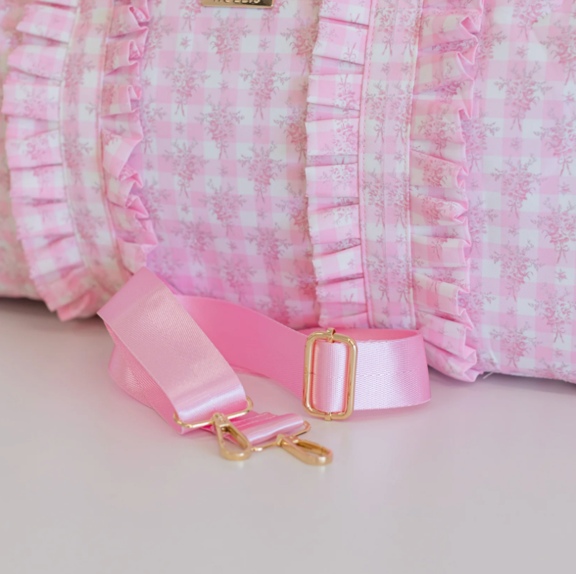 Crafted from lightweight yet durable nylon, this weekender is available in three standout styles: a vibrant floral pattern, a bold solid pink, and a timeless solid nude. Each bag's unique touch ensures that no two pieces are exactly the same, making your travel companion as distinctive as you are.