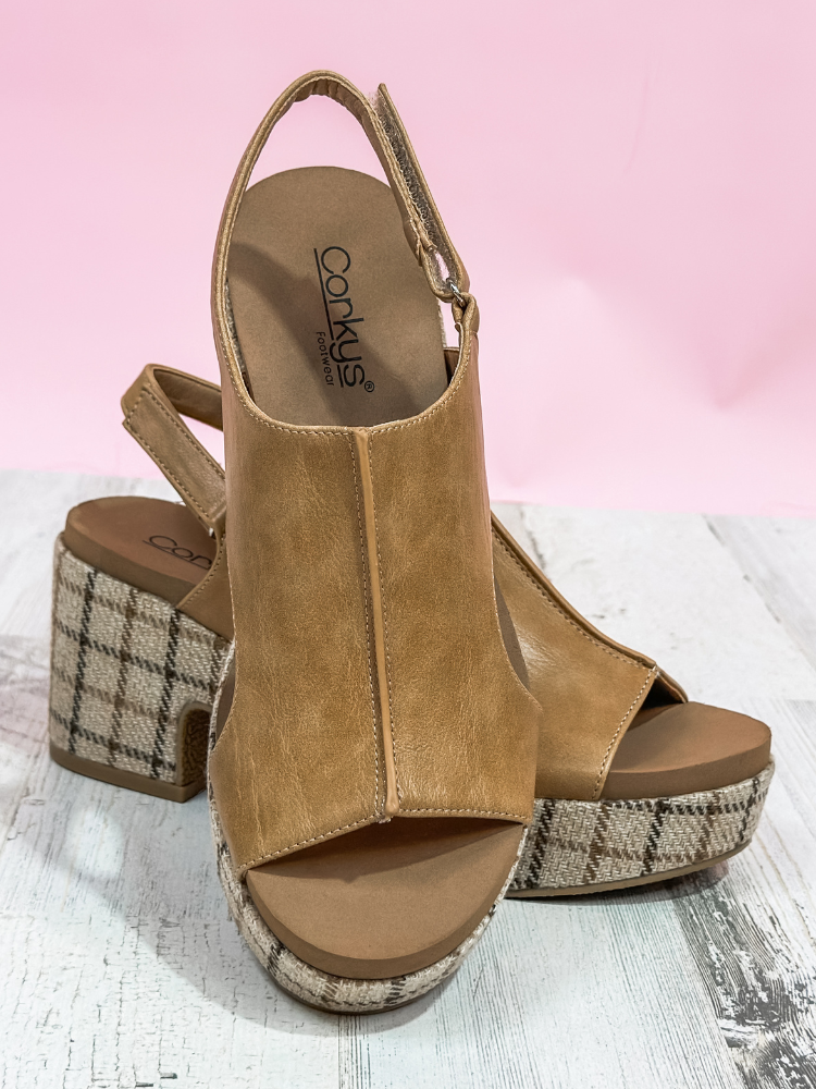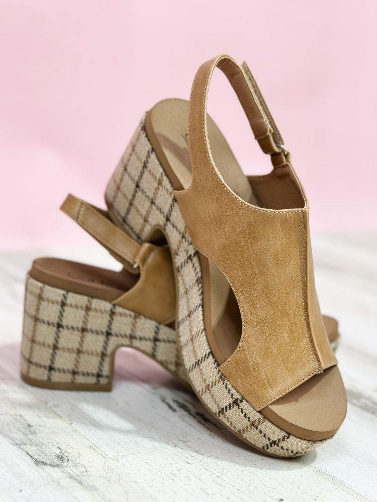 Step into effortless style with the Miss Carley heel in the warm Caramel Combo plaid from Corkys. This chic heel blends classic plaid patterns with a versatile caramel shade, making it perfect for dressing up any outfit. Comfortable enough for all-day wear, these heels offer a flattering silhouette that elevates your look while keeping your feet supported. Add a touch of timeless charm to your wardrobe with this must-have heel.